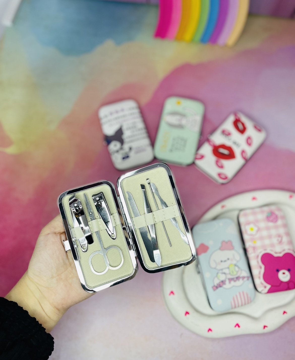 همه ی محصولاتی که برای مانیکور لازم داری و با خودش داره😍😍